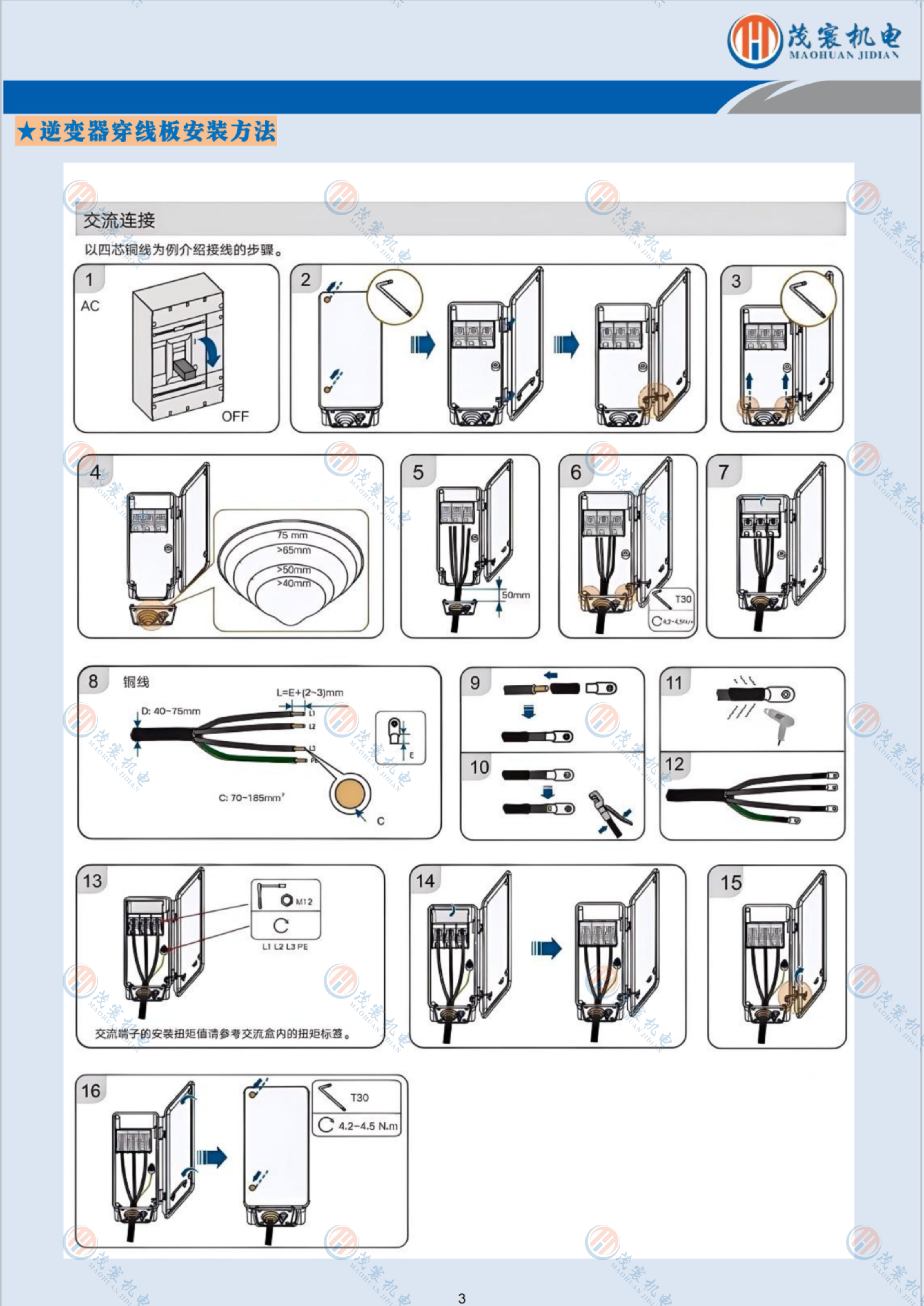 ① 用M8的安裝螺釘固定穿線板(注意扭矩)